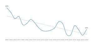 최근 20년 동안 국내 기업의 자산 대비 수익성이 절반 수준으로 감소한 것으로 나타났다.대한상공회의소는 매출 기준 상위 1000개 기업의 수익성 추이를 분석한 결과, 총자산영업이익률이 2004년 4.2%에서 2024년 2.2%로 하락했다고 10일 밝혔다. 총자산영업이익률은 영업이익을 총자산으로 나눈 지표로, 기업이 자산을 얼마나 효율적으로 활용해 수익을 냈는지를 보여준다. 2004년에는 자산 1억원으로 420만원의 수익을 남겼지만, 2024년에는 같은 자산으로 220만원의 수익밖에 남기지 못한다는 의미다. 주지환 산업연구원 부연구위