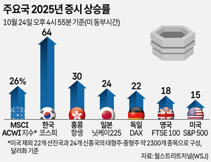 코스피가 올들어 세계 1위의 압도적인 상승률을 기록하며 4000선을 돌파했다. 전 거래일 기준 주요 20개국(G20)의 주가 지수 종가를 비교한 결과, 코스피는 연초 이후 64.27% 상승했다. 이 기간 코스피는 2399.49에서 3941.59로 약 10개월 사이 1542.10포인트 올라 G20 주요 지수 중 유일하게 60%대의 수익률을 기록했다. 2위인 홍콩 항셍지수가 30%, 3위 일본 닛케이225평균주가 수익률이 24%인 점을 고려하면 코스피의 상승률은 타의 추종을 불허한다.코스피는 지난달 장 중 역대 최고점을 기록하면서 신기