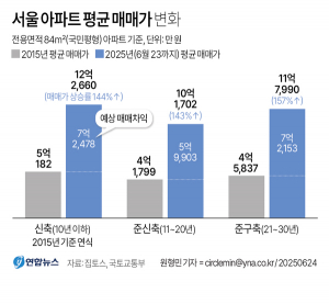 지난 10년간 서울에서 가장 큰 시세 차익을 남긴 아파트는 ‘신축 국민평형’(84㎡)으로 나타났다.24일 부동산 중개업체 집토스가 국토교통부 실거래가 자료를 분석한 결과, 2015년 당시 5억182만원에 거래됐던 준공 10년 이하 서울 신축 전용면적 84㎡ 아파트가 올해 평균(6월 23일까지 기준) 12억2660만원에 거래돼 7억2478만원(144%)의 시세 차익을 남긴 것으로 추산됐다. 이는 2015년 매매된 동일 면적 준구축(21년 이상∼30년 이하)의 시세 차익(7억2153만원)이나 준신축(준공 11년 이상∼20년 이하)의 차