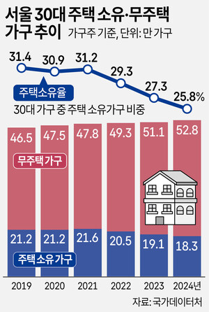 이재명 대통령 취임 5개월 만에 서울 아파트 매매가격이 5년래 최고 상승률을 기록했다. 주거 안정을 위해 ▲주택담보대출 한도를 6억원으로 제한하는 ‘6·27 대책’ ▲공급 계획을 담은 ‘9·7대책’ ▲규제지역을 대폭 확대한 ‘10·15대책’을 연이어 발표했으나, 아파트 가격이 더욱 가파른 상승세를 타고 있다. 이같은 아파트 가격 급등 속에서 30대 무주택 가구가 역대 최대로 조사됐다.24일 KB부동산이 발표한 11월 전국 주택가격동향(10일 기준)에 따르면 서울 아파트 매매가격은 전월 대비 1.72% 올랐다. 2020년 9월(2.0