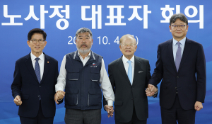 노동계와 경영계, 정부 대표가 10개월 만에 한자리에 모여 근로시간, 정년연장, 격차 해소 등 노동 현안을 둘러싼 사회적 대화의 진행 상황을 점검하고 향후 방향을 논의했다.노사정 대표들은 ‘미래세대의 좋은 일자리 창출’이 사회적 대화의 우선 목표라는 데 공감대를 형성하고 대화의 속도를 높이기 위해 앞으로 두 달에 한 번씩 모이기로 했다.경제사회노동위원회(경사노위)는 4일 서울 종로 경사노위 대회의실에서 김동명 한국노총 위원장과 손경식 한국경영자총협회(경총) 회장, 김문수 고용노동부 장관, 권기섭 경사노위 위원장이 참석한 가운데 노사