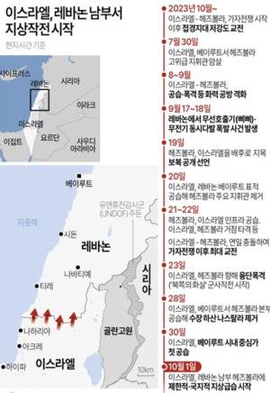 이스라엘군이 2006년 이후 처음으로 레바논 남부 국경지역에 본격적으로 진입하게 되었다.18년 만에 헤즈볼라의 본거지로 지상군을 투입하며 대규모 군사작전을 개시한 이번 작전으로 이스라엘과 이란의 지원을 받는 레바논의 무장단체 헤즈볼라 간 충돌이 새로운 국면에 접어들고 있다.예루살렘포스트, 와이넷 등에 따르면, 이스라엘 내각은 최근 회의를 통해 레바논 군사작전의 다음 단계에 대한 승인을 내리고, 북부 접경지의 군사적 봉쇄와 대규모 포격을 감행했다.이스라엘군 북부사령부는 지난달 30일(이하 현지시간) 오후 8시 40분께 성명을 내고 메