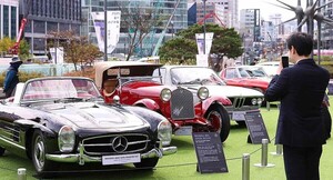 24일 서울 강남구 코엑스 광장에서 열린 '2025 서울 클래식카 쇼'를 찾은 시민들이 다양한 클래식카를 살펴보고 있다.