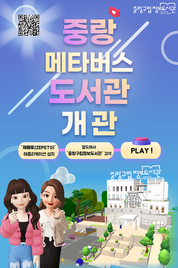 한편 중랑구립정보도서관은 ‘제페토’ 어플리케이션을 통해 ‘다른 공간 같은 느낌! 인증샷 이벤트’ ‘이름짓기 이벤트’ ‘도서관에서 책을 찾아라!’ 등 개관 기념 이벤트도 진행할 예정이다. 중랑구립정보도서관 누리집·인스타그램·카카오톡 채널 등에서 관련 정보를 확인할 수 있다.
