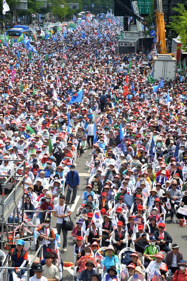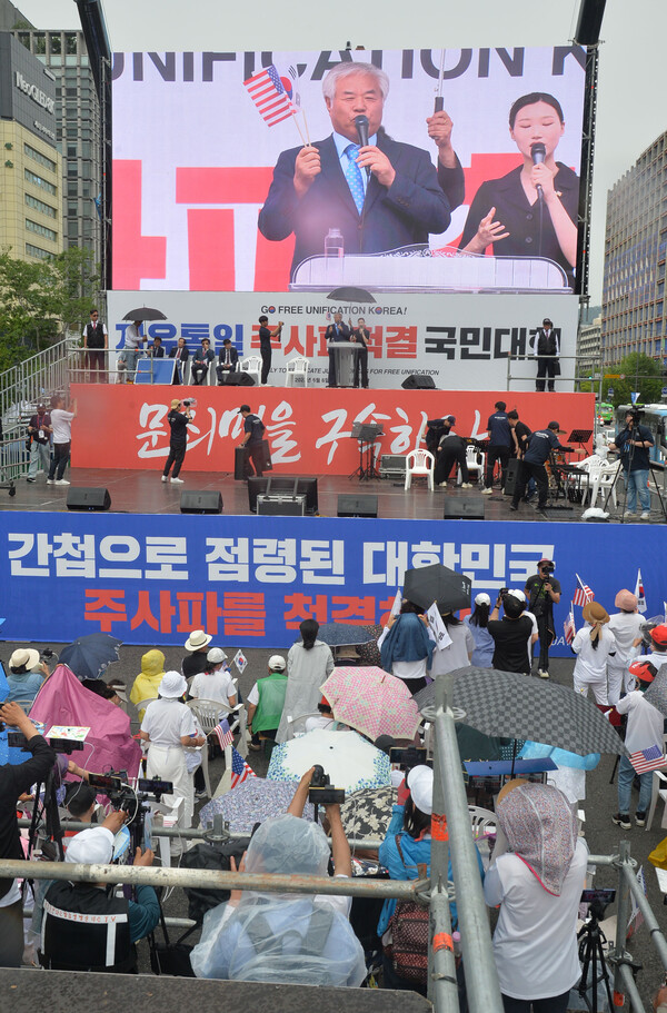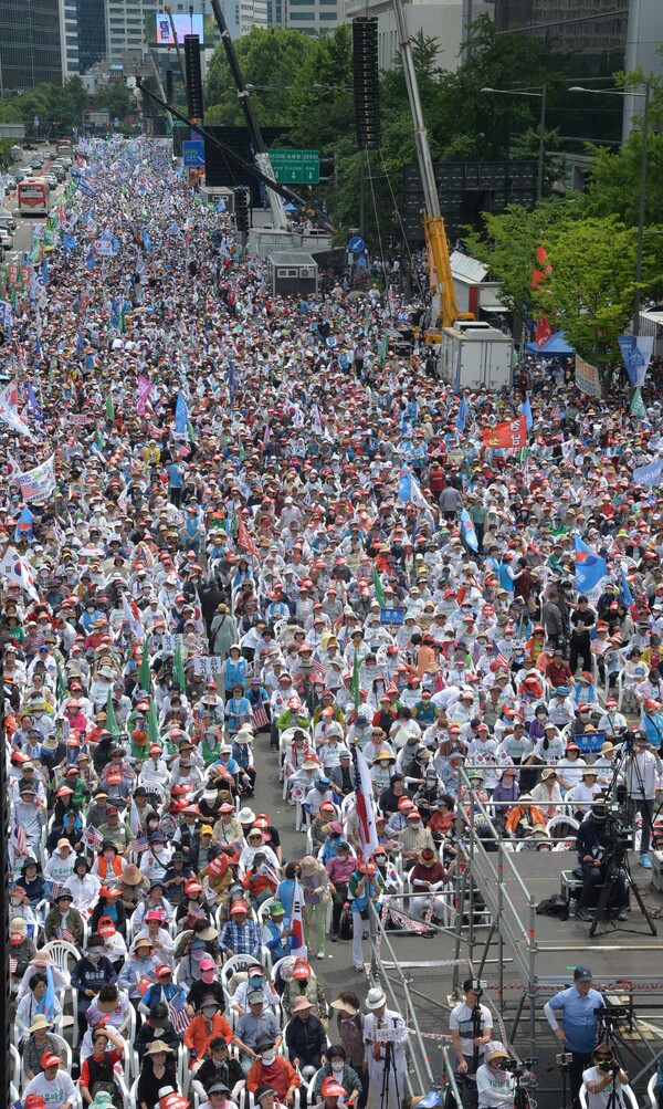 현충일인 6일 오후 1시부터 광화문 이승만광장에서 ‘6.6 국민대회’가 열렸다. 이날 집회에는 전국 각지에서 10만여 명(주최측 추산)의 애국시민이 모인 가운데 진행됐다. 주최측 전광훈 목사(국민혁명본부 의장)는 이번 집회의 목표를 “자유통일을 위한 1000만서명”이라고 밝혔다.