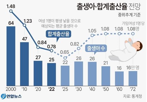 통계청의 2052∼2122년 시도별 장기추계에 따르면 약 100년 후인 2122년 중위 추계 기준 전국 인구는 1936만 명으로 2000만 명을 밑돌 것으로 예상됐다.