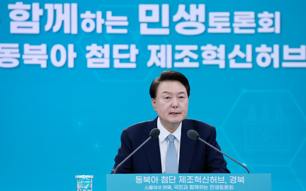 윤 대통령은 20일 경북 경산 영남대학교에서 26번째 민생토론회를 주재하고 "조국 근대화의 성취를 이끌었던 저력을 바탕으로 경북이 더 크게 도약하고 성공적인 지방시대를 열도록 정부가 적극 지원하겠다"며 이같이 말했다.