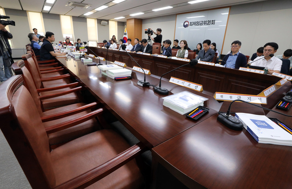 내년도 최저임금 심의를 위한 최저임금위원회 제8차 전원회의가 경영계 위원들이 모두 빠진 채 ‘반쪽’으로 진행됐다. 지난 전원회의 표결과정에서 일부 민노총 근로자위원들의 투표방해 행위에 반발해 사용자위원들이 회의 불참을 선언했기 때문이다.