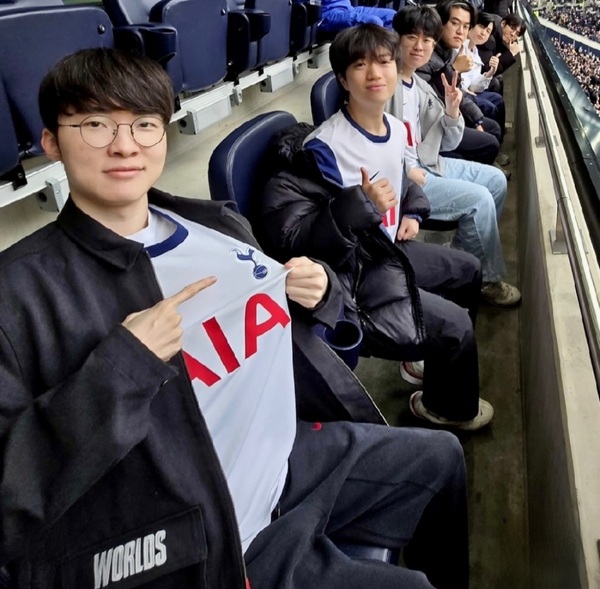 T1 선수단은 3일(현지시간) 영국 런던 토트넘 홋스퍼 스타디움에서 열린 2024-2025 잉글랜드 프리미어리그(EPL) 10라운드 토트넘 대 애스턴 빌라 경기를 관람한 뒤 사회관계망서비스(SNS)를 통해 직관 인증 사진을 남겼다. T1 주장인 페이커 이상혁을 비롯해 ‘케리아’ 류민석, ‘제우스’ 최우제, ‘구마유시’ 이민형, ‘톰’ 임재현 코치, ‘오너’ 문현준 등이 나란히 앉은 사진에는 영어로 "초대해 주셔서 감사하다(Thank you for inviting us!)"는 문구가 담기기도 했다.