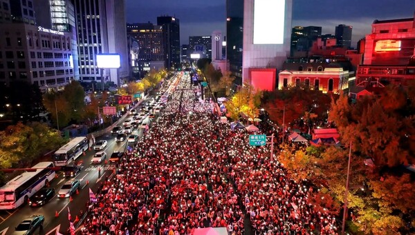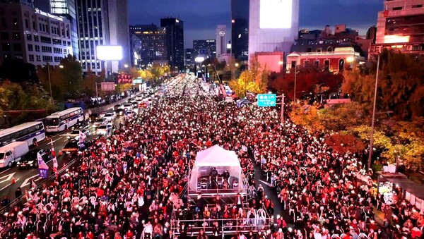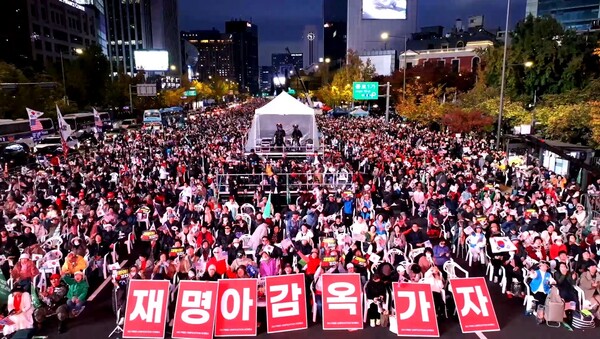 대한민국바로세우기국민운동본부가 주최한 ‘대통령 불법 탄핵 저지를 위한 광화문국민혁명대회’가 9일 서울 광화문광장에서 개최됐다. 이날 집회에는 주최 측 추산 30만 명의 참가자들이 '재명아! 감방가자'라는 피켓과 함께 “윤석열 대통령의 불법 탄핵을 통해 위기를 모면하려는 이재명을 즉각 구속하라”고 주장했다.