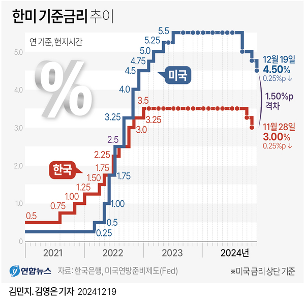 한은은 25일 공개한 ‘2025년 통화신용정책 운영 방향’ 보고서에서 "물가 상승률 안정세를 이어가고 성장의 하방 압력을 완화하는 동시에 금융 안정 리스크(위험)에도 유의하면서 기준금리를 추가로 인하할 것"이라고 밝혔다. 특히 "물가 상승률이 안정된 흐름을 유지할 것으로 예상되는 가운데 정치 불확실성 증대와 주력 업종의 글로벌 경쟁 심화, 통상환경 변화 등으로 경기의 하방 리스크가 커진 점을 고려하겠다"고 강조했다.