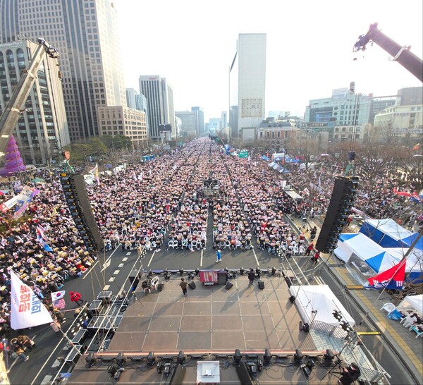 윤석열 대통령과 자유민주주의를 지키기 위해 300만여 명(주최 측 추산)의 애국시민들이 15일 토요일에도 서울 광화문 광장에 모여들었다. 대한민국바로세우기국민운동본부(대국본)이 주최한 이날 ‘광화문 국민대회’에는 세종문화회관 부근부터 시청역 일대까지 인산인해를 이뤘다.
