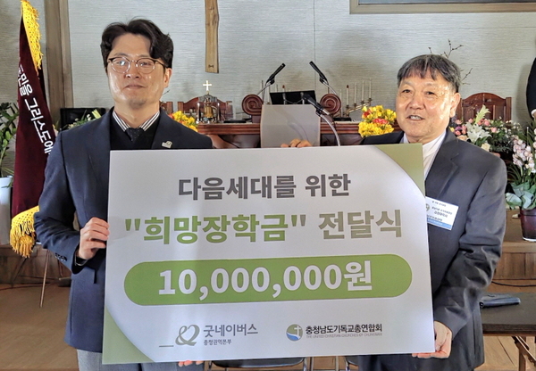 올해 역시 총회 후 월드비전 대전세종충남사업본부(본부장 강은희)와 업무협약을 체결하고 충청남도 지역 나눔 문화 확산 및 모든 아이들의 풍성한 삶을 위한 사업에 힘쓸 것을 밝혔다. 이번 협약을 통해 충남기총은 충청남도 내 취약아동, 청소년들이 건강하게 성장할 수 있도록 월드비전과 함께 협력하며 후원할 방침이다. 이밖에도 굿네이버스 충청권역본부에 다음세대를 위한 희망장학금 1000만원을 지원하는 전달식을 이날 가졌다.