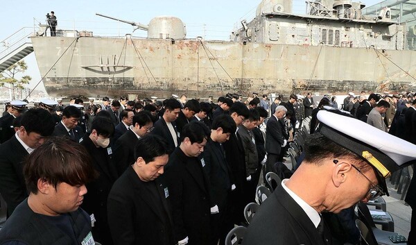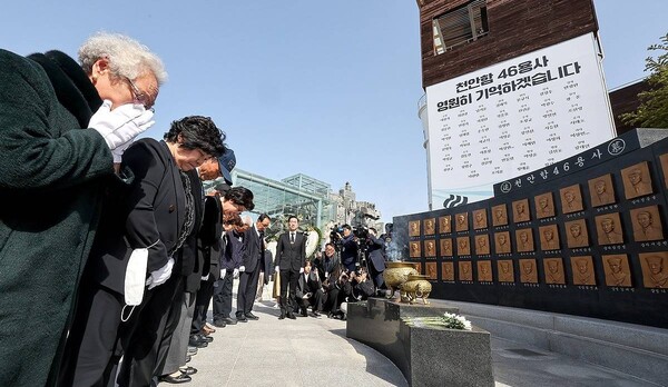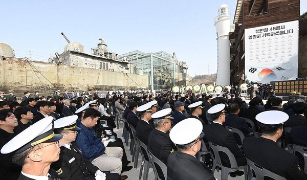 해군은 26일 오전 경기 평택 제2함대사령부 내 천안함 46용사 추모비 앞에서 허성재 2함대사령관(소장)이 주관한 가운데 ‘제15기 천안함 46용사 추모식’을 거행했다고 밝혔다. 이날 추모식에는 천안함 46용사 유가족과 참전 장병, 국회의원, 천안함재단, 2함대 지휘관 및 참모, 국가보훈부 및 보훈협회 관계자 등 200여명이 참석했다.