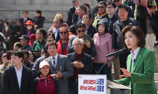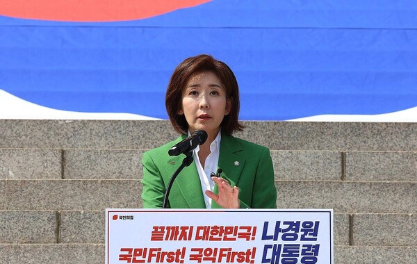 국민의힘 나경원 의원은 11일 대권 도전을 공식 선언했다. 나 의원은 이날 국회 본관 계단 앞에서 출마 선언식을 열고 "무너져가는 대한민국을 바로 세우고 진정한 국민 승리의 시대를 열겠다"고 밝혔다.