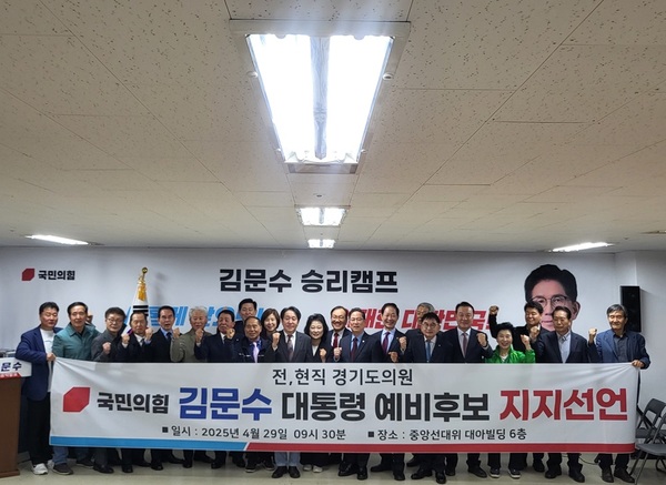 진종설 전 경기도의회 의장을 포함한 전·현직 경기도의원들은 이날 김 후보 선거캠프에서 "풍전등화에 놓인 대한민국호를 살릴 강력한 지도자로 김문수 국민의힘 대통령 후보를 지지한다"며 공개 지지선언문을 발표했다.