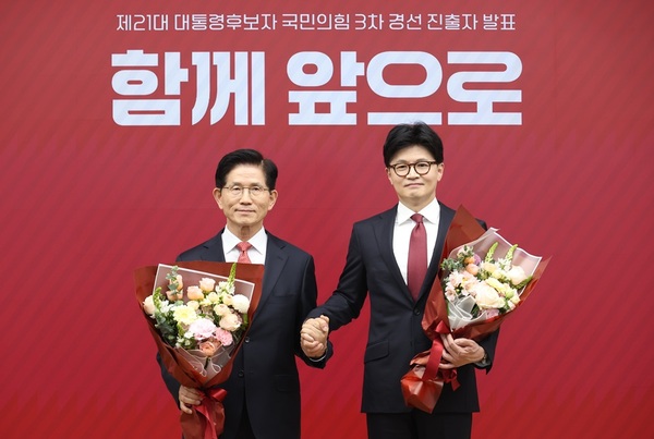국민의힘 제21대 대선 경선이 김문수 후보와 한동훈 후보의 양강 구도로 압축됐다. 이로써 ‘탄핵 반대’와 ‘탄핵 찬성’이라는 뚜렷한 지지 성향을 대변하는 두 후보가 최종 맞대결을 벌이게 됐다. 또 낙마한 홍준표 후보는 30년간의 정치 생활에 마침표를 찍었다.