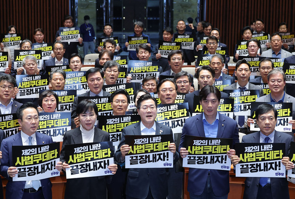 더불어민주당의 사법부에 대한 겁박이 위험수위를 넘고 있어 법치가 무너지는 가운데 결국 민주주의가 위험에 처해 있다는 진단이 나온다.