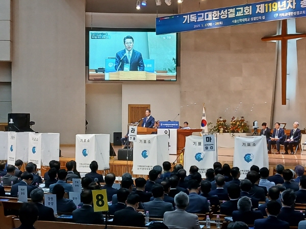 이 외에 장로부총회장 안보욱 장로(귀래교회), 서기 김요한 목사(은산제일교회), 회계 조성환 장로(공주교회), 부서기 홍지명 목사(호원교회) 등 단독 입후보자들은 무투표 당선됐다.