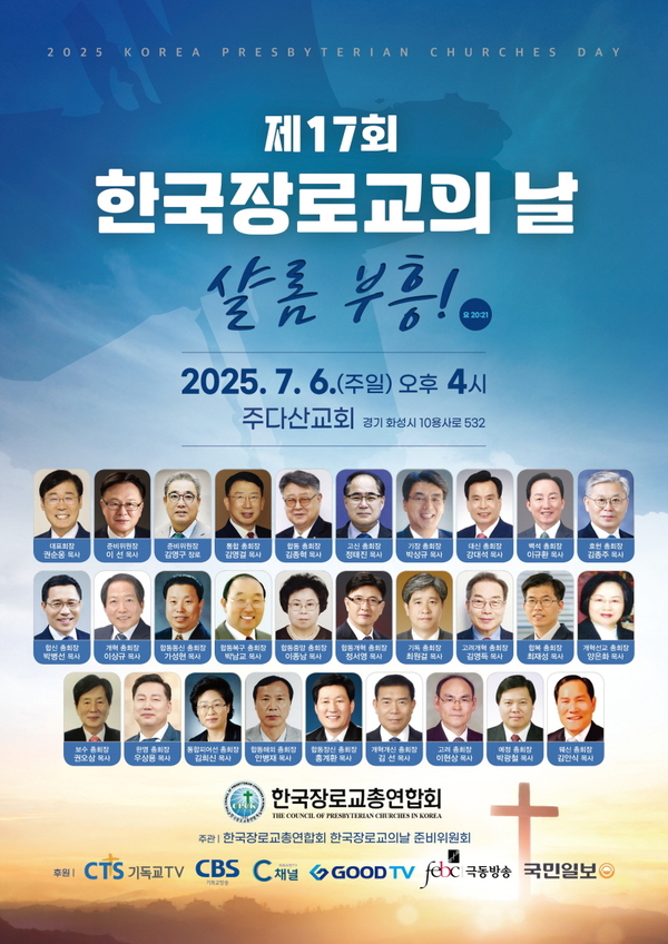 한국장로교총연합회(한장총, 대표회장 권순웅 목사)는 오는 7월 6일 오후 4시 경기도 화성시 주다산교회에서 ‘제17회 한국장로교의 날’ 행사를 개최한다고 밝혔다.