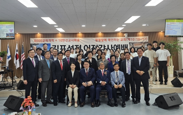 ‘8000개 교회 개척’과 ‘10만 명 선교사 파송’이라는 비전을 선포하며 나아가고 있는 김포열방제자교회(양준원 목사)는 지난 22일 경기도 김포시 김포한강9로76번길 63 아스타빌딩 509호에서 성전 이전 감사예배를 드렸다.