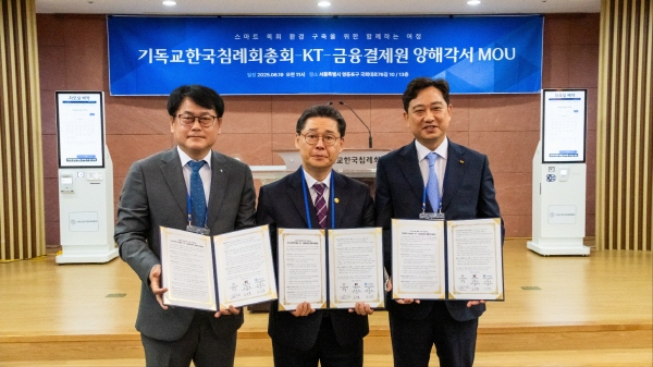 기독교한국침례회 114차 총회(총회장 이욥 목사)는 지난 19일 여의도총회빌딩에서 KT(대표 김영섭), 금융결제원(원장 박종석)과 함께 ‘스마트 목회 환경 구축을 위한 3자 업무협약(MOU)’을 체결했다. 이번 협약을 통해 디지털 기술과 신앙이 결합된 새로운 목회·선교 생태계 조성이 본격화될 전망이다.
