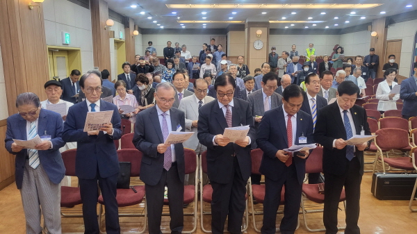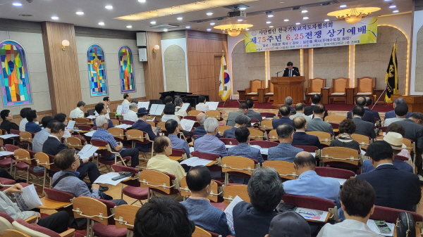 한국기독교지도자협의회(이하 지도자협, 대표회장 최병두 목사)는 지난 24일 한국기독교회관 조에홀에서 제75주년 6·25전쟁 상기 예배를 드리고, 동족상잔의 뼈아픈 상처를 기억하며 성명을 발표했다.