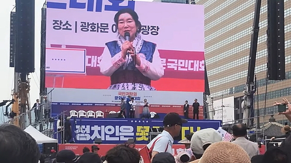 어릴 때부터 남다른 사명감과 애국심을 가졌던 이 총재는 광화문 집회에서 수 차례 마이크를 잡고 연설해 온 인물이다. 그녀는 "이 나라를 위해 아스팔트 위에서 수년째 눈물로 기도하며 광화문을 지켜온 전광훈 목사님께 깊은 감사를 드린다"고 말했다. "그분은 하나님께서 대한민국을 살리기 위해 이 땅에 보내신 귀한 분"이라며 "전 목사님 같은 분이 몇 분만 더 있었다면 대한민국은 지금보다 훨씬 나았을 것"이라고 단언했다.