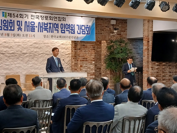 회의 전 드려진 1부 예배는 지동빈 장로(부회장)의 인도로 전병하 장로(부회장)의 기도, 박봉수 장로(부회장)의 성경봉독, 남상훈 장로(증경회장)의 설교, 이해중 장로(서울· 서북지역장로회연합회 회장)의 환영사, 주기도문 순으로 진행됐다.