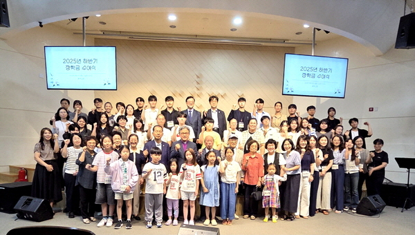 기독교대한감리회(감독회장 김정석) 본부 선교국 목회자유가족돕기운동본부(회장 김진호 감독)는 5일 오전 서울 성동구 꽃재교회에서 2025년 하반기 감사예배 및 장학금 전달식을 갖고 사랑과 위로, 용기를 전했다. 장학금 전달식은 16년째 이어지는 사역으로 올해 하반기에도 대학생 20명, 고등학생 8명, 중학생 3명, 초등학생 7명, 유치원생 2명 등 총 40명에게 장학금이 지급됐다.