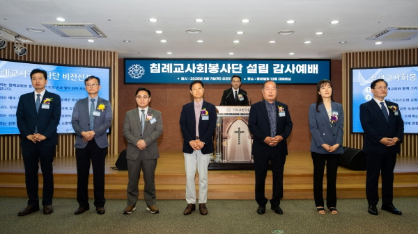 기독교한국침례회(총회장 이욥 목사) 침례교사회봉사단(이사장 정인택 목사, 단장 한덕진 목사)은 지난 7일 여의도 총회빌딩 13층 대예배실에서 설립 감사예배를 드렸다.