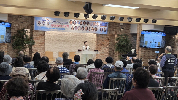 성령의새연합이 주최한 광복 80주년 기념 나라와 민족을 위한 기도회가 지난 12일 서울 종로구 한국교회백주년기념관에서 열렸다. 총 3부로 진행된 예배는 신석 서초호민교회 목사, 김종수 원주가나교회 목사, 정덕순 새과천중앙교회 목사가 강사로 등단해 메시지를 전했다.