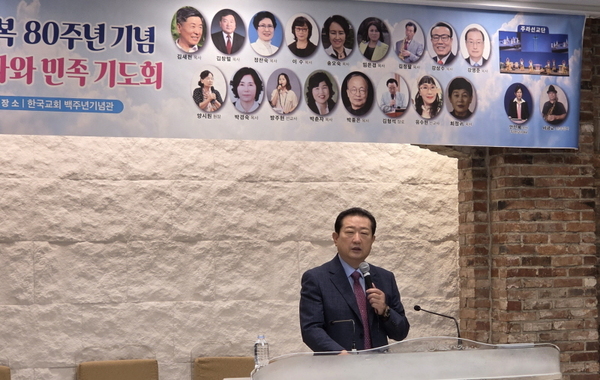 그러면서 "오늘 한국은 자유민주주의와 신앙을 버리고, 사회주의와 인본주의, 물질만능주의를 좇는 유혹에 빠져 있다. 8.15의 은혜를 기억한다면 오직 하나님 편에 서야 한다"며 "교회가 하나님과 세상을 동시에 붙들려는 머뭇거림에서 벗어나야 한다"고 강조했다. 덧붙여 "한국교회가 다시 무릎 꿇고 회개하며, 다음 세대와 나라를 위해 부르짖을 때 하나님은 다시 응답을 주실 것"이라고 말했다.