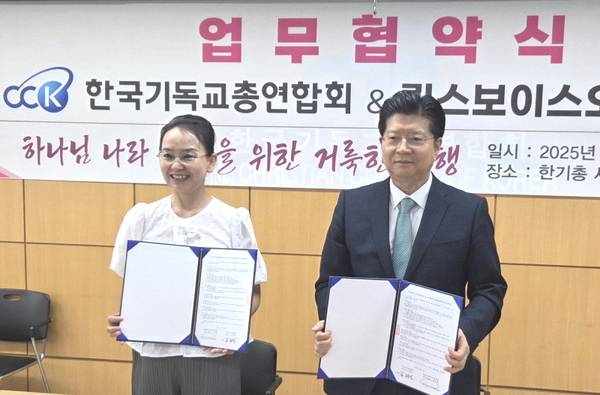 한국기독교총연합회(한기총, 대표회장 고경환 목사)와 킹스보이스오페라컴퍼니(대표 김혜영)가 최근 한기총 세미나실에서 업무협약을 맺고 음악을 통한 세계 선교에 협력키로 했다.