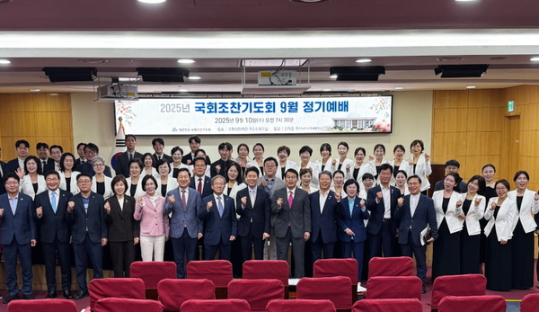 대한민국국회조찬기도회가 지난 10일 서울 여의도 국회의원회관 소회의실에서 9월 정기예배를 열고, 한반도와 세계 평화, 국민 대통합을 위해 간절히 기도했다.