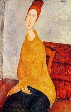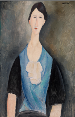 연인이자 뮤즈였던 잔을 그린 초상화 연작. 모딜리아니는 잔을 주제로 작품 수십 점을 남겼다. 배경과 인물의 경계를 극도로 단순화시킨 캔버스에 길게 뻗은 목, 타원형 얼굴, 비어있는 눈동자가 영적인 분위기를 자아낸다. 모딜리아니에게 잔은 단순한 모델이 아니었다. 그녀의 존재 자체가 영감의 원천이었다. 이 초상화 연작들은 그들의 사랑을 증명함과 동시에 그들의 비극적 삶을 상징한다.