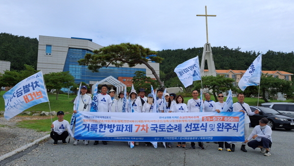 제7차 거룩한방파제 국토순례가 전남 신안 문준경 전도사 순교기념관에서 지난 26일 막을 내렸다. 서울 양화진 선교사 묘역에서 출발한 순례단은 경기·충남·전북·전남을 거쳐 26일간 총 650km를 걸으며 90개의 거룩한 방파제를 세웠다. 이번 여정은 순교 신앙을 기리고 한국교회와 민족을 위한 기도의 발걸음이었다.