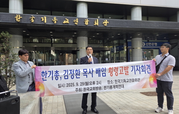 한국기독교총연합회(한기총) 전 사무총장 김정환 목사의 재정 비리와 권한 남용 의혹을 둘러싼 고발이 공식화됐다. 한국교회방송 대표 이은재 목사는 27일 서울 종로구 한국기독교연합회관 앞에서 기자회견을 열고, "한기총의 공공성과 도덕성을 훼손한 김정환 전 사무총장과 관련한 진상조사위원회를 구성해 철저히 조사하고 회개자료를 공개하라"고 촉구했다.