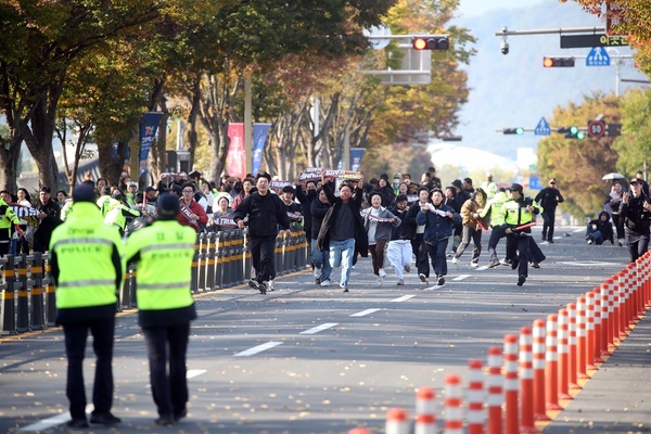 경찰은 만일의 사태에 대비해 차량 차벽을 설치하고 강제 해산에 나섰다. 물리적 충돌이 있었지만 큰 부상자는 없는 것으로 전해졌다.