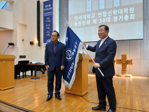 직전 회장인 김대성 총동문회장은 "30년의 신앙 여정 위에 세워진 연세신학의 정신을 잇고, 모든 동문이 한마음으로 한국교회의 부흥과 세계 복음화를 위해 헌신하는 동문회가 되기를 소망한다"라고 이임사를 전했다.