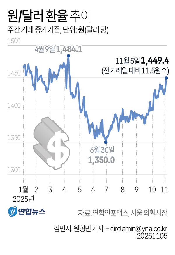 5일(현지시간) 주요 6개국 통화 대비 달러 가치를 나타내는 달러인덱스는 전일보다 0.41% 오른 100.221이다. 달러인덱스가 100을 넘어선 것은 3개월 만이다. 이같은 달러 강세는 미국 연방준비제도(Fed·연준)가 다음 달 금리를 내릴 것이라는 기대감이 줄어들고 있기 때문으로 보인다. 이날 서울 외환시장에서 미국 달러화 대비 원화 환율은 11.5원 오른 1449.4원으로 마감했다. 장 중 고가 기준으로 지난 4월 11일(1457.2원) 이후 약 7개월 만에 가장 높은 수준이다.