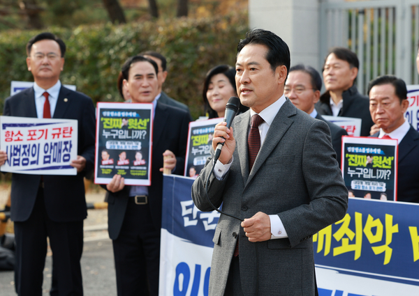 국민의힘은 11일 대검찰청을 찾아 대장동 사건 항소 포기를 결정한 검찰을 규탄하면서 동시에 이 대통령을 겨냥해 날을 세웠다.