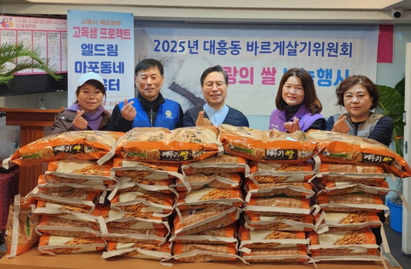 마포구 대흥동 바르게살기위원회(위원장 나귀환)는 지난 12일 쪽방촌과 독거 어르신을 섬기는 소셜서비스 NGO (사)월드뷰티핸즈(회장 최에스더 신한대 교수) 및 (사)해돋는마을(이사장 장헌일 목사)에 사랑의 쌀을 전달하며 따뜻한 나눔을 실천했다.