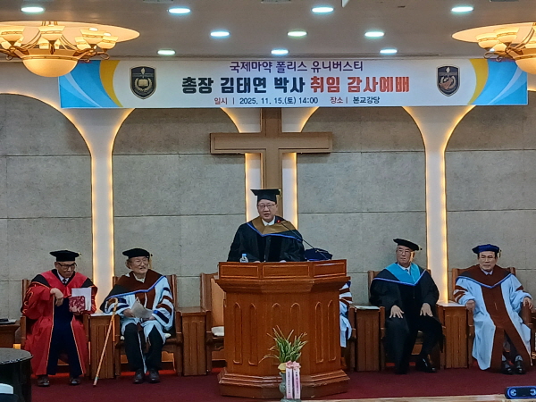 마약 청정국에서 유통국이 된 불행을 회복하기 위해 설립된 ‘국제마약경찰대학교’ 제2대 총장에 김태연 박사가 취임했다. 국제마약경찰대학교는 지난 15일 한국기독교회관에서 취임 감사 예배를 드렸다. 동 대학교는 현재 2만5000평을 독지가로부터 기증을 받은 상태다.