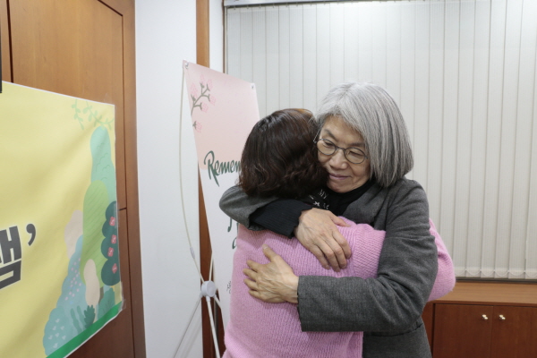 지난 14일 서울지하철 5호선 충정로역사 내에 위치한 도너패밀리 사랑방에서 열린 ‘제5회 심리지원 프로그램’ 수료식에서 선배 도너패밀리에게 꽃다발을 건네받은 노자안 씨는 남편 故 천기화 씨를 떠올리며 눈물을 훔쳤다. 고인은 2011년 세상을 떠나며 장기 7개와 인체조직 36개를 기증했다. 노 씨는 "울타리 같던 남편을 잃은 뒤 감정이 무너질까 두려웠지만, 고인의 사랑을 기억하는 일이 곧 나를 회복시키는 길이라는 것을 깨달았다."라고 말했다.