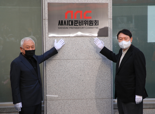윤석열 국민의힘 대선후보 선거대책위원회와 짝을 맞춰 활동할 ‘새시대준비위원회’(새시대위)가 12일 공식 출범식을 열고 활동을 시작했다. 김한길 전 민주당 대표가 위원장을 맡은 새시대위는 윤 후보 직속으로 편성돼 소속 당적과 관계없이 활동함으로써 외연 확장을 위한 조직이다.