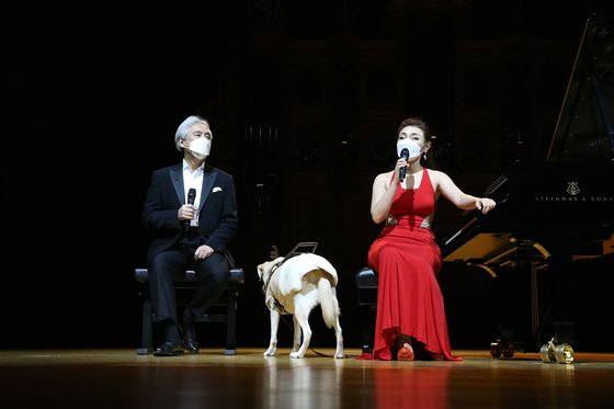 시각장애 피아니스트가 주는 감동은 각별하다. 88개 건반을 마주해야 하는 피아노는 다른 악기들보다 시각장애인에게 장벽이 높다. 김예지(41) 국회의원이 피아니스트 김대진(59) 한국예술종합학교 총장과 한 무대에 섰다. 지난 17일 한예종 음악원 이강숙홀에서 드뷔시의 ‘ 작은 모음곡’을 한 대의 피아노로 나란히 앉아 치는 연탄곡(連彈曲)으로 들려줬다. 한예종 음악원에 재학 중인 장애 학생 4명과 비장애 학생 5명이 함께 연주하는 ‘포르테 콘서트’의 마지막 무대를 장식한 것이다. 김 의원의 곁에는 안내견이 내내 자리를 지켰다.