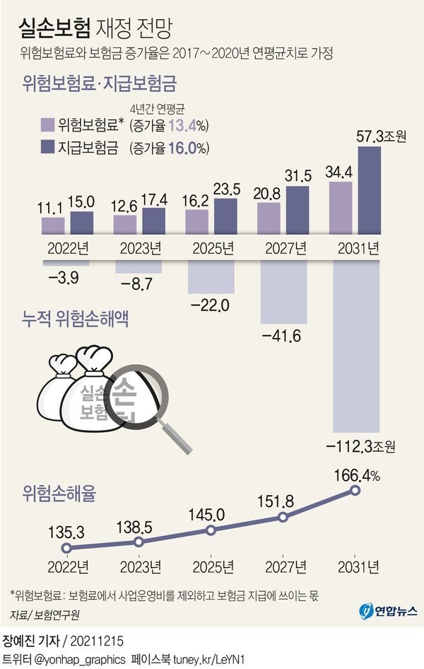 올해 손해보험사들은 3분기 말까지 131.0%의 손해율을 기록해 연말까지 손해액이 3조5000억원에 이를 것으로 추산된다. 이에 따라 보험업계는 올해 이상의 인상을 추진했지만 금융당국은 부정적인 입장이다. 올해 실손보험 전체의 보험료 평균 인상률은 10∼12% 수준이다.
